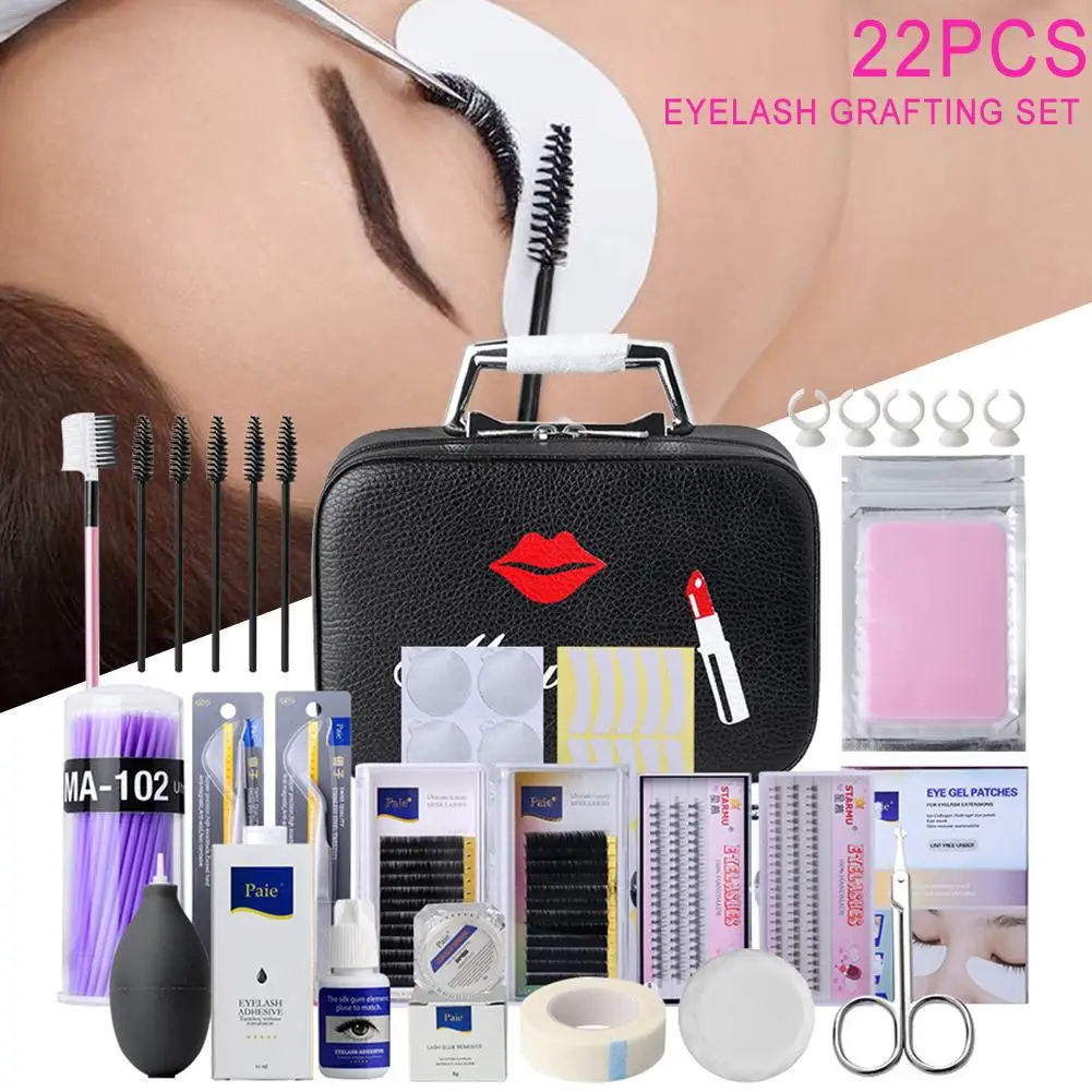 Best Chance of 22PCS False Eyelashes Extension Practice Exercise Set Professional Head Model Lip Makeup Eyelash Gr