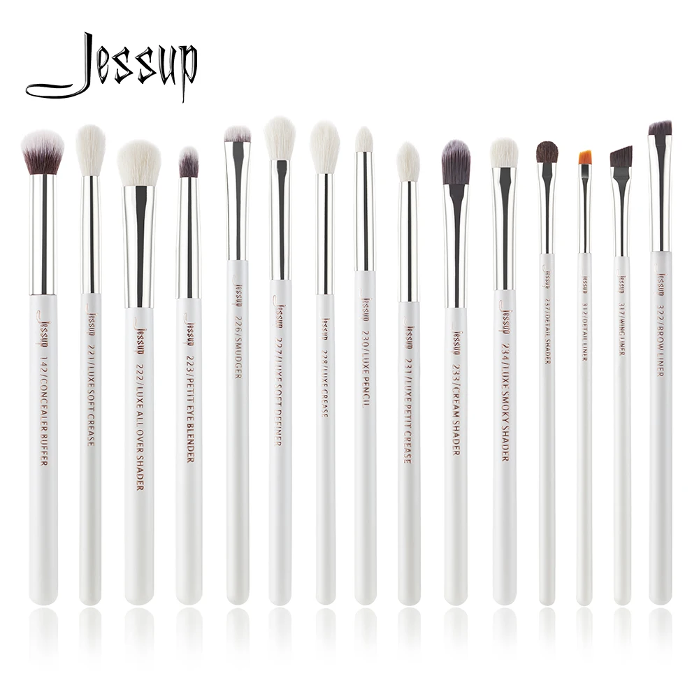 .image of Jessup Brand Pearl White/Silver Professional Makeup Brushes Set Make up Brush Tools kit Eye Liner S