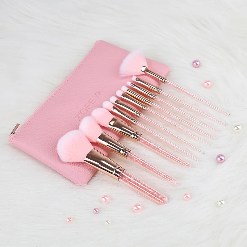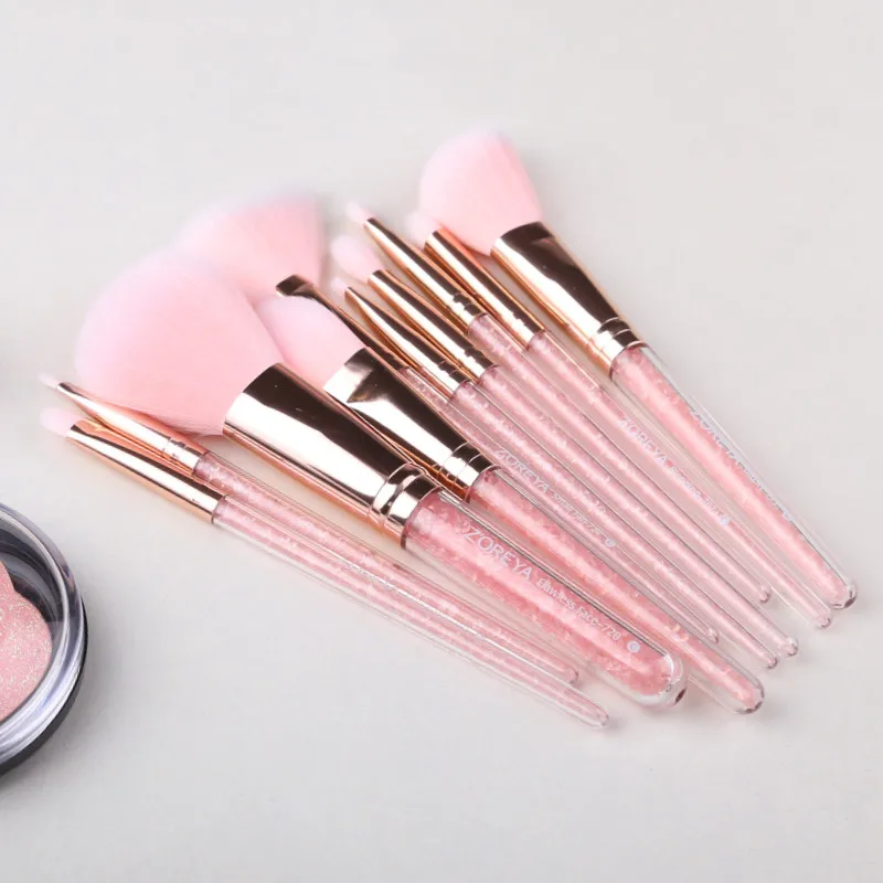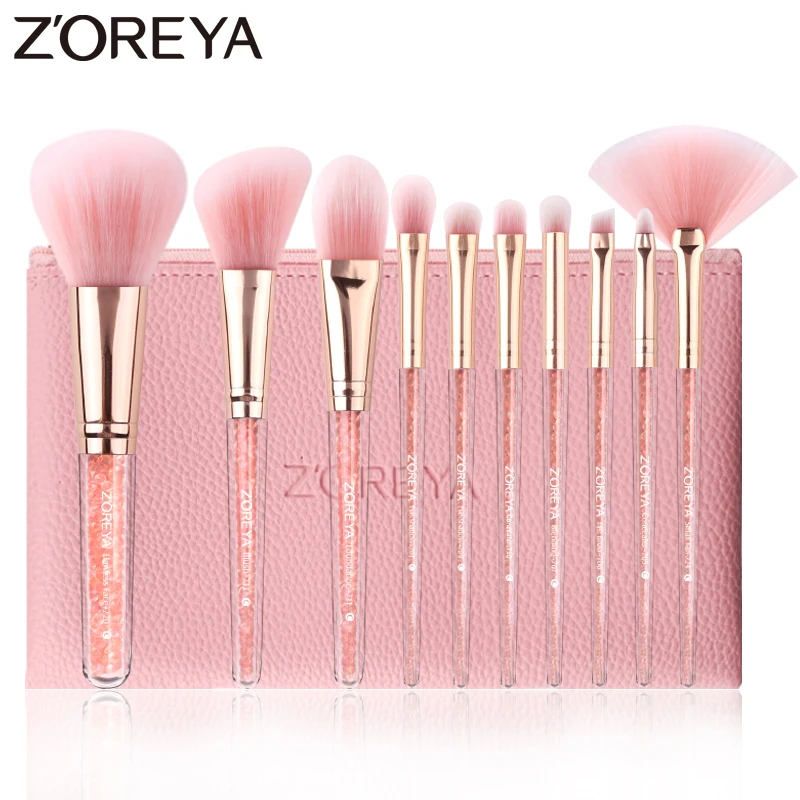 Cheap Chance for ZOREYA 10PCS Pink Crystal Makeup Brushes Foundation Concealer Blusher Make Up Brush Set Super Soft